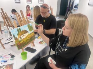 Особливою частиною стала зустріч з мисткинею Христиною Соломчак — дрогобицькою волонтеркою, яка показала, як через живопис говорити про те, що словами сказати важко.